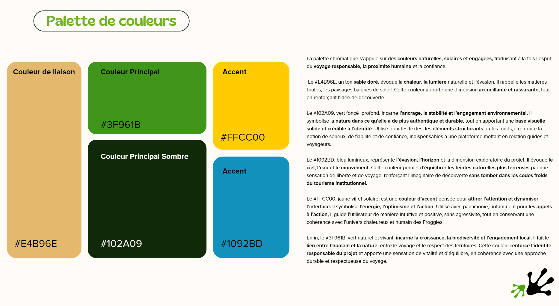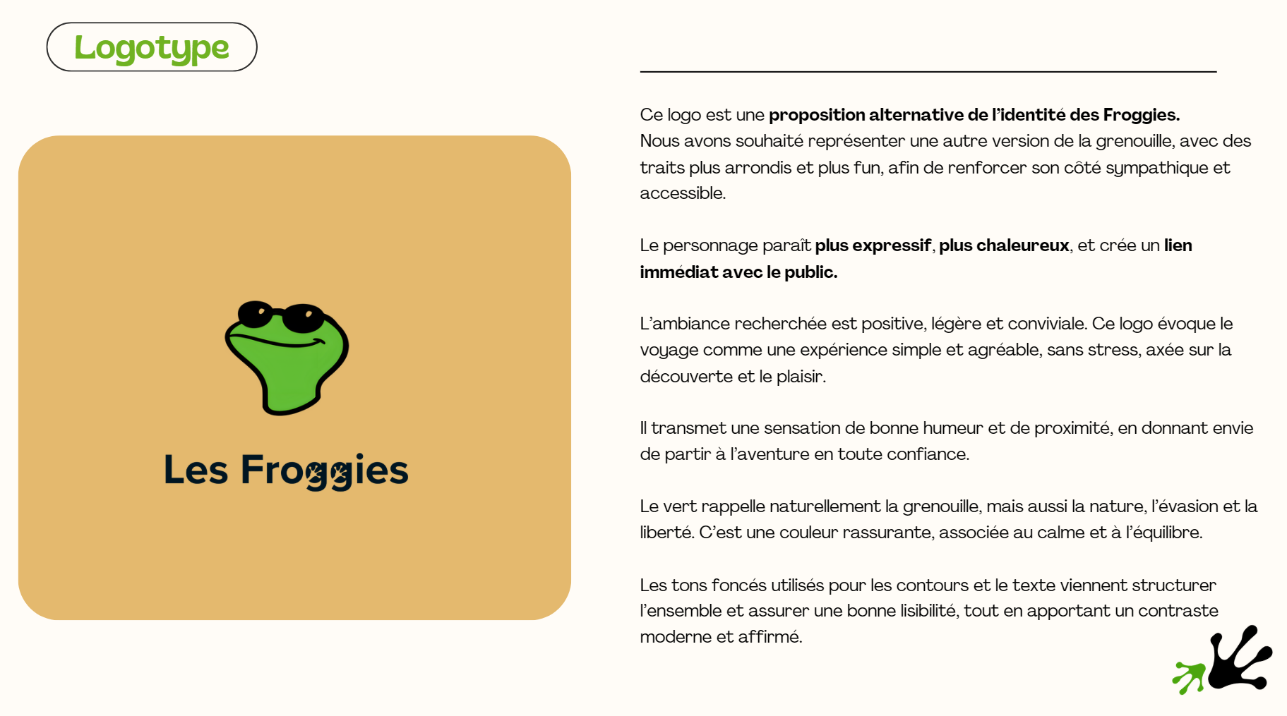 Dans le cadre d’un hackathon d’une semaine en groupe, nous avons repensé l’univers de marque de Les Froggies avec pour objectif de proposer une identité plus différenciante et engageante dans le secteur du voyage.