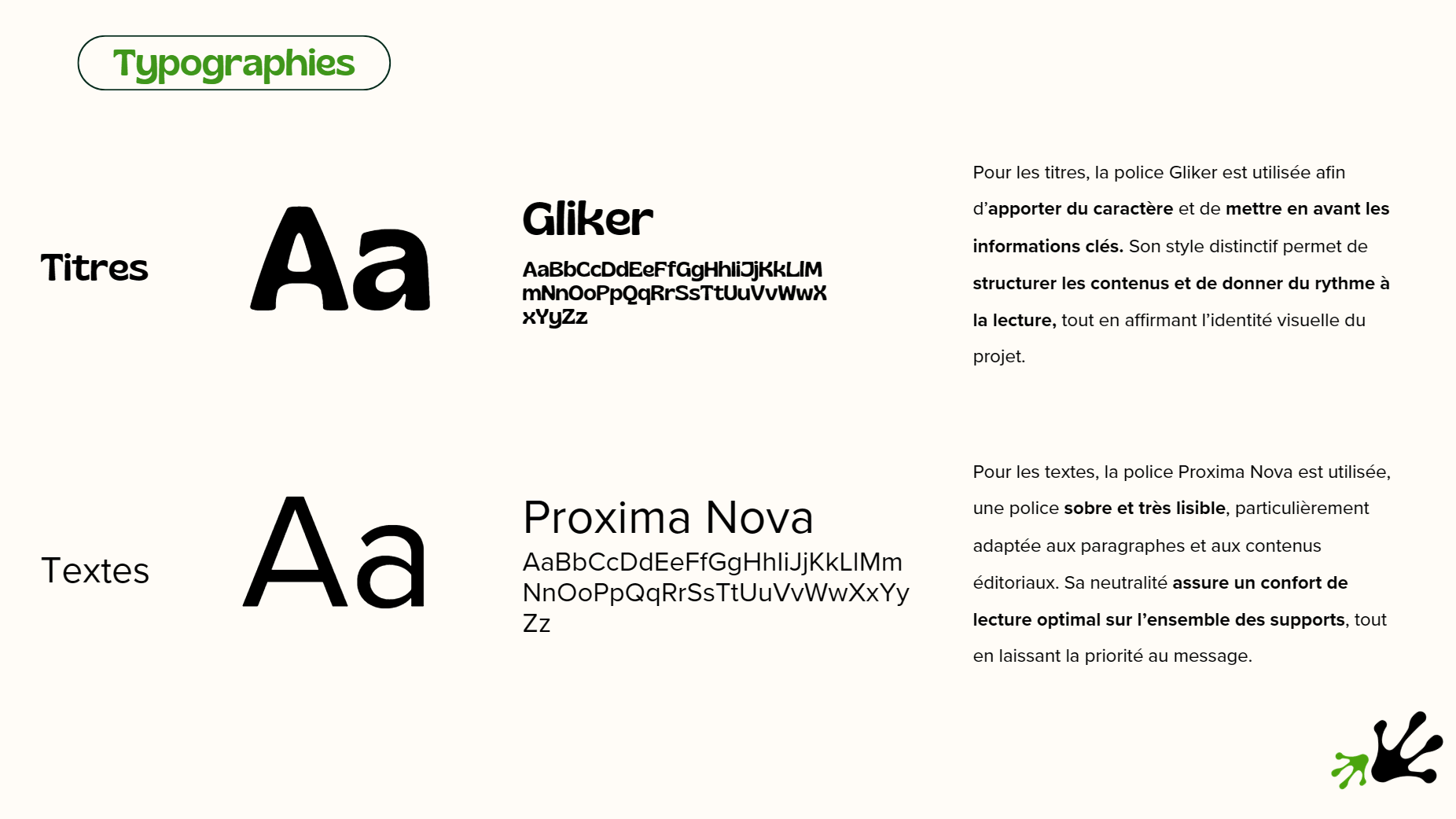 -Identité visuelle (logo, charte graphique), création de contenus, UX/UI design et supports digitaux, réalisés en travail d’équipe.