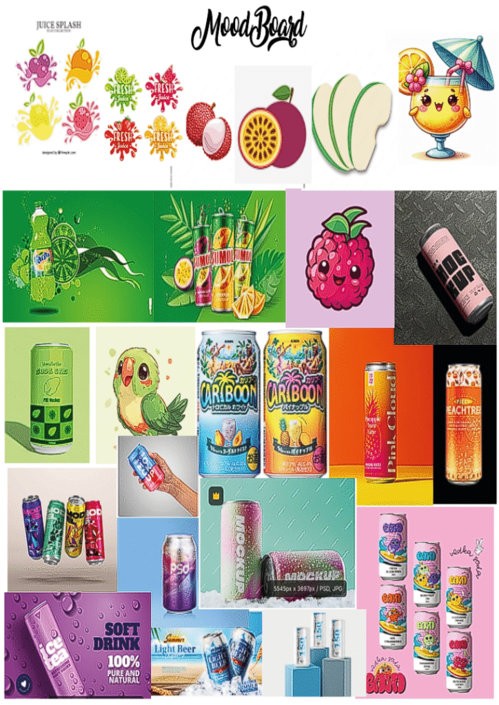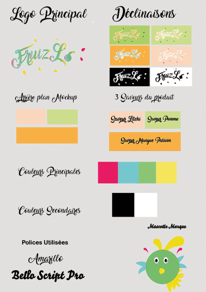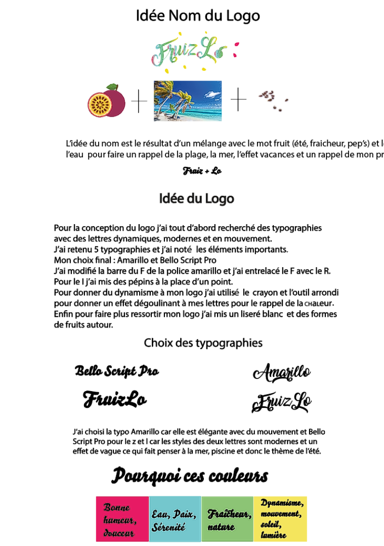 Pour créer cette marque je voulais faire un rappel de l’été avec une touche de fruit, de fraîcheur et la chaleur des vacances.